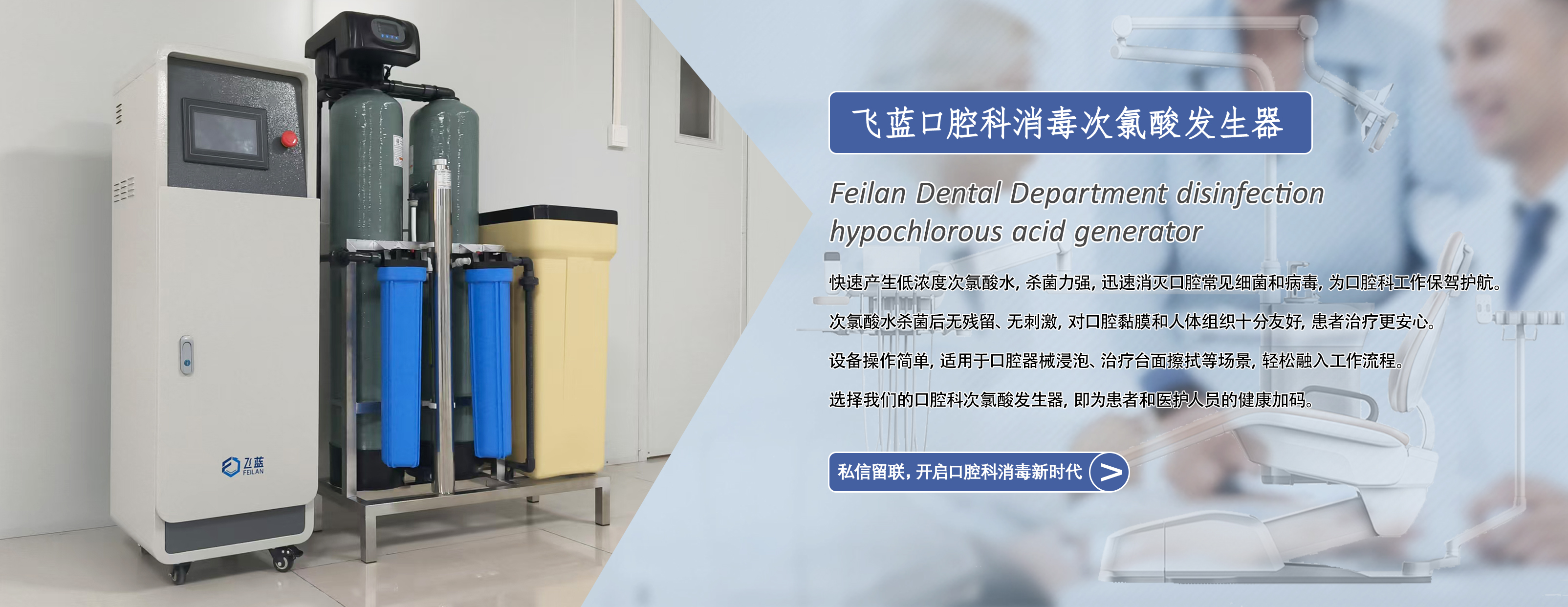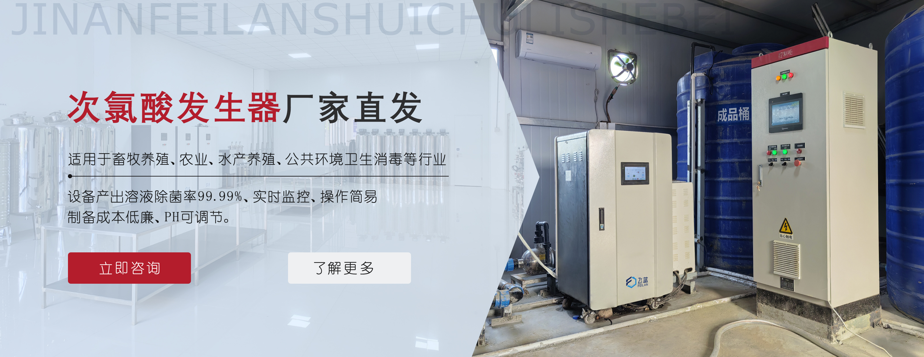 濟(jì)南飛藍(lán)水處理設(shè)備有限公司坐落于山東濟(jì)南,注冊(cè)資本100萬(wàn)元,標(biāo)準(zhǔn)廠房2400余平米,研發(fā)人員16余名。集研發(fā)、生產(chǎn)、銷售、安裝以及售后服務(wù)于一體,專注為公共環(huán)境衛(wèi)生、口腔科牙椅管路、食品加工保鮮、畜牧養(yǎng)殖系列以及醫(yī)院各個(gè)科室服務(wù)等提供一站式消殺解決方案。 公司擁有多項(xiàng)專利證書,專注研發(fā)次氯酸發(fā)生器,提供有效的解決方案。公司具備完善的方案設(shè)計(jì)、產(chǎn)品開發(fā)、設(shè)備生產(chǎn)、工程安裝與售后服務(wù),目前...